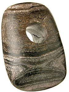 Polished macehead made from gneiss, found with a cremation burial at Stonehenge (3,000 – 2,500 BC)